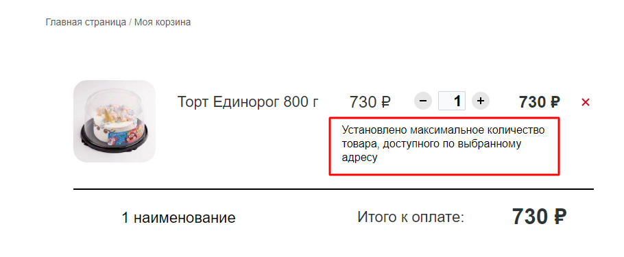 4. В поле «Количество» вы можете изменить количество товара для покупки. Если товара в магазине меньше, чем вы добавили в корзину, система сообщит вам об этом.